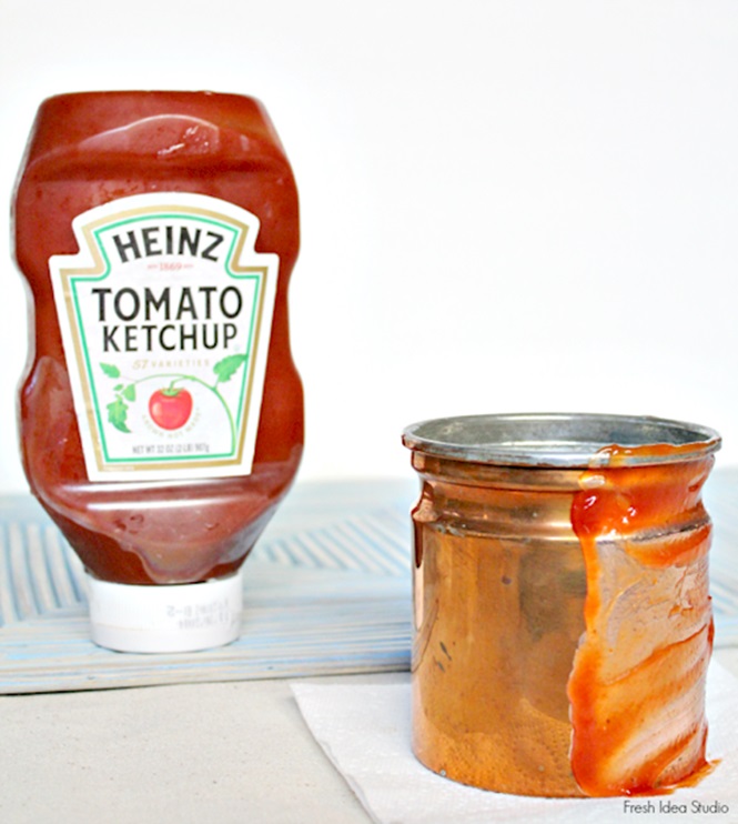 Alumínium tartók és rézedények tisztítása ketchuppal.