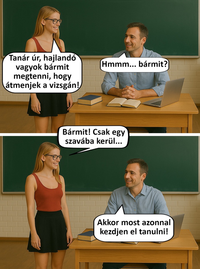 1. Elsőre talán a tanár úr számára volt kínos helyzet, de aztán fordult a kocka.