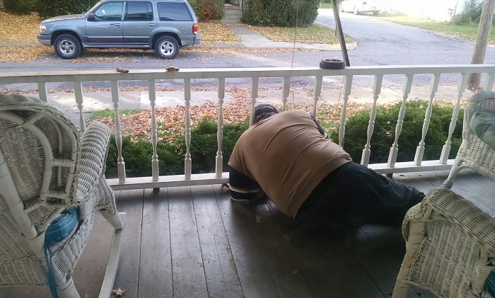 (4) Az én drágalátos férjem beszorult a veranda korlát közé, ugyanis be szerette volna bizonyítani, hogy kifér rajta a feje.