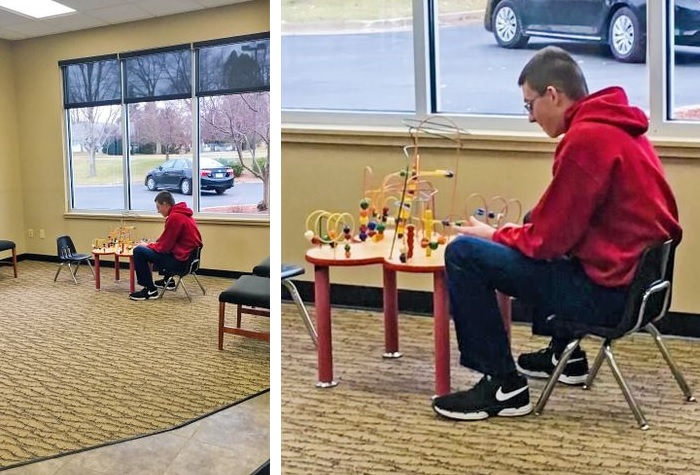 (6) Amíg a bankban a sorunkra vártunk a férjemmel, ő egyszer csak fogta magát és leült játszani a gyereksarokban.