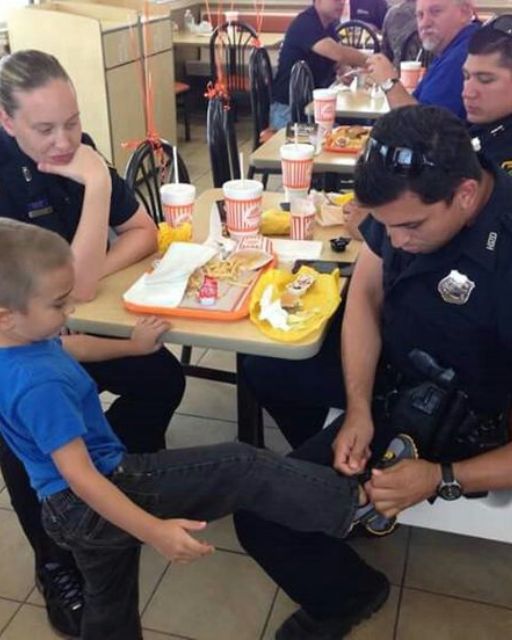 Egy rendőr segített egy kisfiúnak bekötni a cipőjét – másodpercekkel később mindenki lefagyott az étteremben