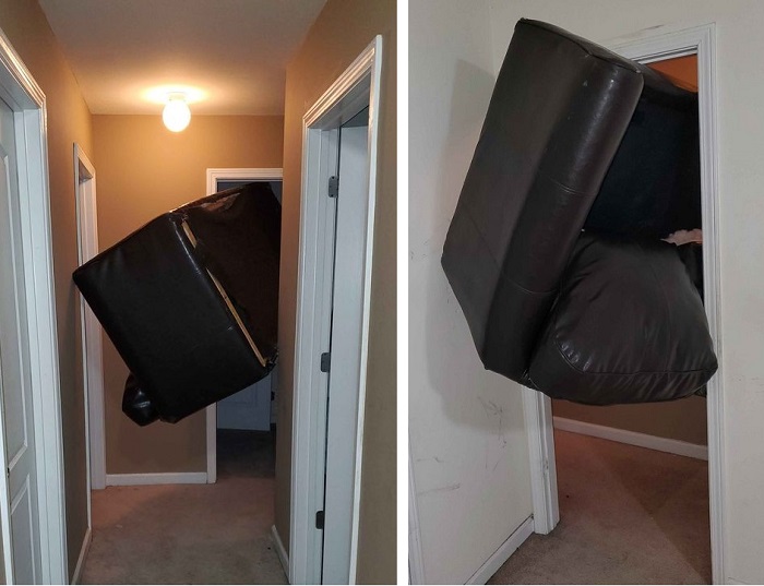 4. A lakótársammal megpróbáltuk a kanapét bevinni a nappaliba, de annyira beragadt az ajtóban, hogy azóta meg sem bírjuk mozdítani. Azt hiszem, hogy meg kell tanulnunk együtt élni a helyzettel.
