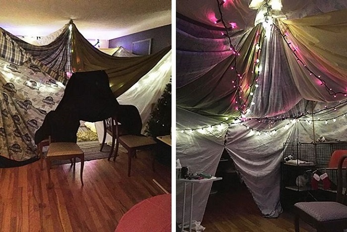 12. Nehéz napom volt a munkahelyemen, ezért a barátom meglepetésből épített egy romantikus bunkert a nappalinkban, mire hazaértem.