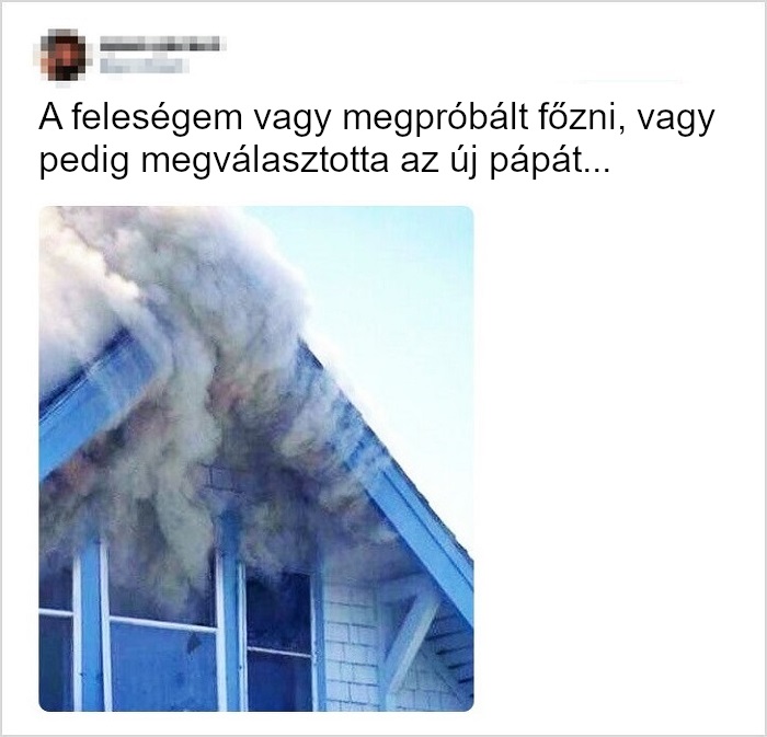 14. Összevesztünk a feleségemmel, hogy melyikünk a jobb szakács. Ez hiba volt, ugyanis ő szokott nekem kaját csomagolni a munkába.