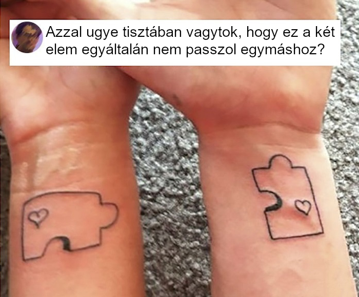 7. Ez a szerelmespár úgy döntött, hogy egy páros tetoválással fejezik ki az összetartozásukat. Büszkén mutatták meg a nagyvilágnak az elkészült tetoválásokat, ám egy kommentelő felhívta a figyelmüket egy aprócska hibára.