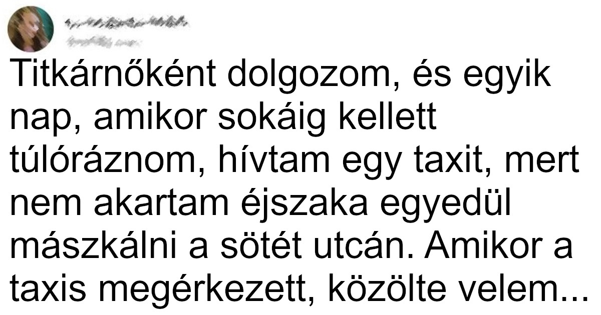 (1) Félúton jártunk, amikor taxis megállt egy bolt előtt, és szó nélkül kiszállt az autóból. Először meglepődtem, de arra gondoltam, hogy biztos valami baj van a kocsival. Bement a boltba, majd 10 perc múlva kijött egy zacskó fánkkal, beszállt a kocsiba, és mintha mi sem történt volna, folytattuk az utunkat.
