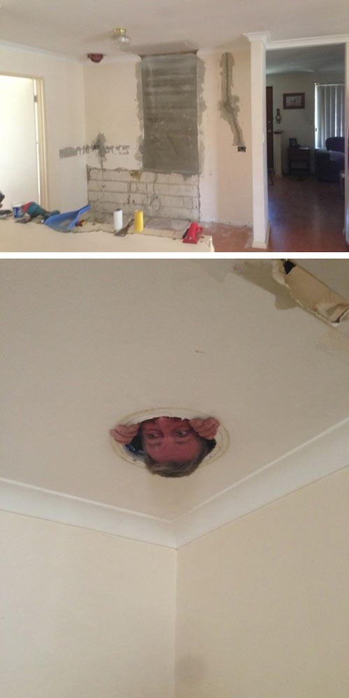 11. Amikor az apám felújította a konyhánkat, egyszer kihívott a szobámból, hogy segítsek neki egy kicsit. Amikor kimentem, percekig nem találtam sehol, majd egyszer csak felpillantottam és megláttam, ahogy vigyorogva figyel engem egy lyukból a plafonon.