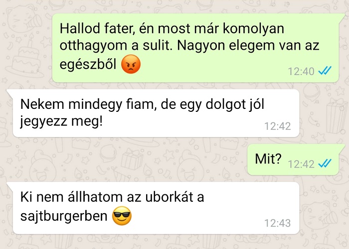 2. Elmentem a suliba, majd pár óra múlva kaptam egy üzenetet az apámtól.